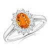 Angara Natural Fire Opal Halo Ring for Women in Sterling Silver/14K Solid Gold/Platinum | October Birthstone Jewelry Gift for Her |Birthday|Wedding|Anniversary|Engagement